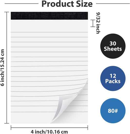 12 Pack Note Pads Refills 4 x 6 Inch Memo Pads Writing Pads, White Small Notepads Scratch Pads Mini Notepad with 30 Sheets Lined Paper in Each Pad