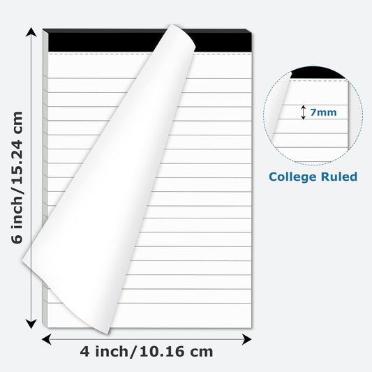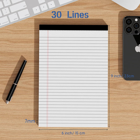 Legal Pads 5" x 8" College Ruled Small Legal Note Pads, 80gsm/21lb White Lined Paper, 30 Sheets per Notepad, 6 Pads per Pack, Perforated To Do List Writing Pads for Versatile Use
