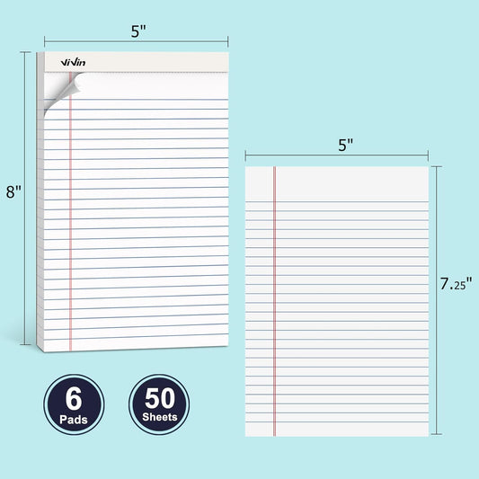 ViVin Legal Pads 8.5 x 11 Inch, Wide Ruled Note Pads, 6 Pack, 50 Sheet/Pad, Perforated Writing Pads, Notepads for Office Home School, 300 Sheets, White Paper