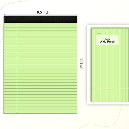 Green Legal Pad Note Pads 8.5 x 11 inch, Wide Ruled Clear Print Writing Pads 30 Sheets/Pad, 20lb Colored Paper, Perforated Notepad with Sturdy Back (3 Pads Green)