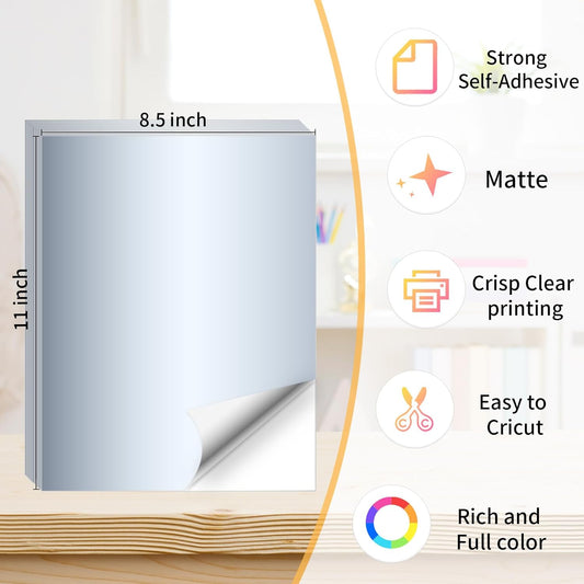 Silver Printable Sticker Paper, 20 Sheets Printable Silver Sticker Paper, Laser/Inkjet Printing-Letter Size (8.5" x 11")