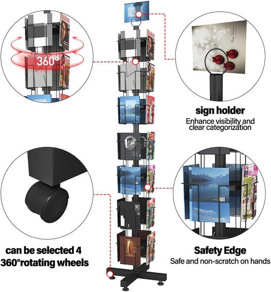 28 Pockets Countertop Rotating Greeting Card Rack, 7 Tier magazine Display Stand Rotating magazine rack for Postcards, Brochures, and Greeting Card