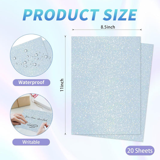 20 Sheets Printable Holographic Sticker Paper,11 x 8.5 Inches Printable Waterproof Paper Rainbow Vinyl Sticker Paper for Inkjet or Laser Printer(Laser starry sky)