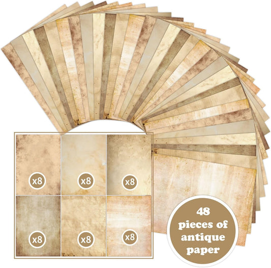 48 Sheets Vintage A4 Double-Sided Printing Paper for Journals Scrapbooking - 100GSM Antique Parchment Aged Paper, Compatible with Inkjet & Laser Printers, Perfect for Crafting, Letters & Art Projects