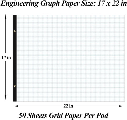 Large Engineering Graph Paper - 22" x 17" Grid Paper, 50 Sheets/100 Pages, 4"x4" Grid Pad, Giant Drafting Pad Sketching Graph Paper for Engineer Architect Designer Mathematician Draftsman