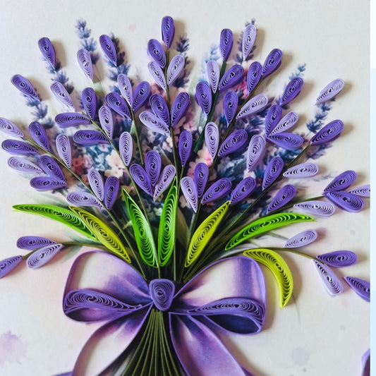 Quilling Cards, handmade card, quilled cards with Dedicated Paper Handmade Art for all occasions: Mother's day, Father's day, Birthday... Lavender flowers bouquet