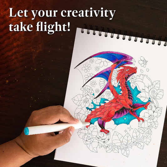 ColorIt Colorful Dragons Adult Coloring Book for Women, Volume II - 50 Single-Sided Designs, Thick Smooth Paper, Lay Flat Hardback Covers, Spiral Bound, Dragon Coloring Pages