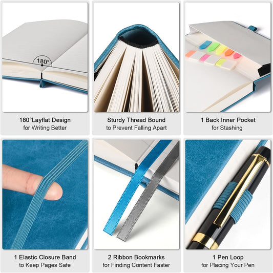 Huhuhero Notebooks Journal, Ruled Notebook, Premium Thick Paper Lined Journal, Black Hardcover Notebook for Office Home School Business Writing Note Taking Journaling, 5"×8.25" (5, Teal)