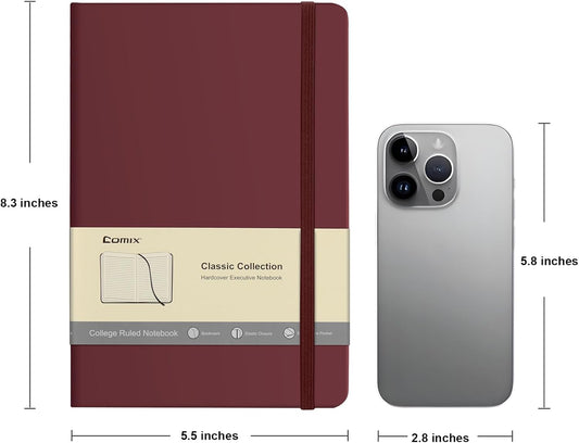 Comix Lined Journal Notebook for Women Men, Journaling Notebooks for Office School Home, Burgundy, 240 Pages, 5.5" x 8.3", College Ruled, A5, Hardcover