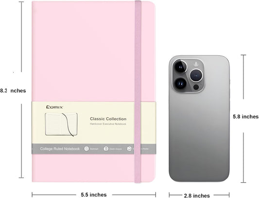 Comix Lined Journal Notebook for Women Men, Journaling Notebooks for Office School Home, Pink, 240 Pages, 5.5" x 8.3", College Ruled, A5, Hardcover
