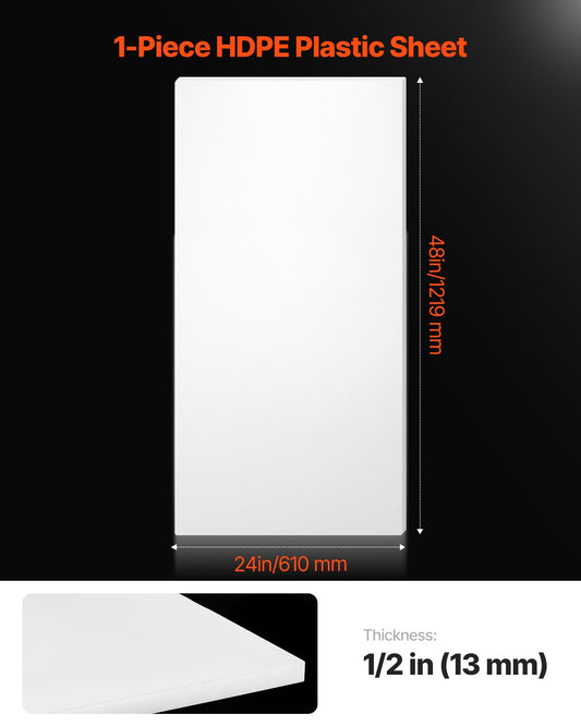 VEVOR HDPE Plastic Sheet Board, 1 Pack High Density Polyethylene Sheet Plastic Panel, 24 x 48 Inch 1/2 Inch Thick Customizable Plastic Panels, for DIY Crafts, Heavy Duty Industrial Equipment, White