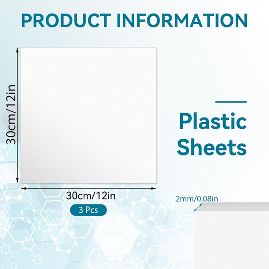 3 Pack White Plastic Sheets 12x12x0.08in Flexible High Tensile Plastic Sheets Hard Plastic Panel for DIY Materials Handicrafts Home Decoration