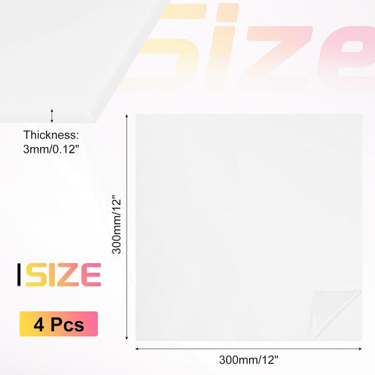 uxcell 4Pcs Acrylic Sheets 12x12 Inch Acrylic Panel 1/8 Inch-3mm Plastic Board for Picture Frames Sign Holders DIY Display Projects Craft, White