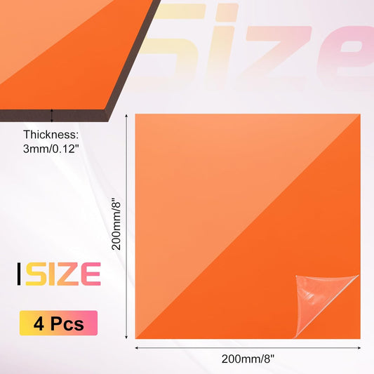 uxcell 4Pcs Acrylic Sheets 8x8 Inch Acrylic Panel 1/8 Inch-3mm Plastic Board for Picture Frames Sign Holders DIY Display Projects Craft, Clear Orange