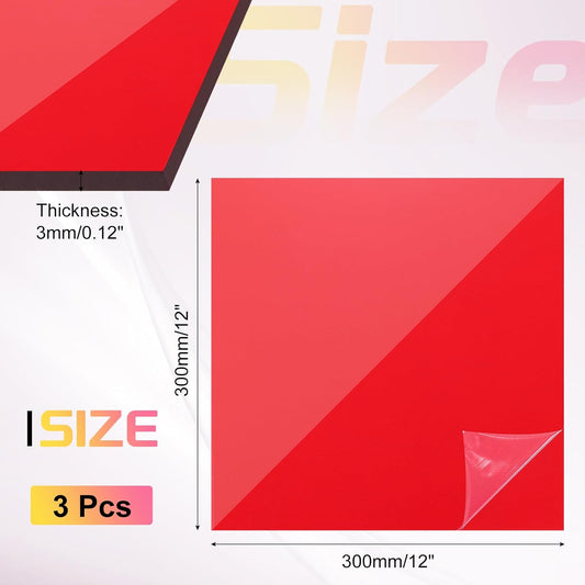 uxcell 3Pcs Acrylic Sheets 12x12 Inch Acrylic Panel 1/8 Inch-3mm Plastic Board for Picture Frames Sign Holders DIY Display Projects Craft, Clear Red
