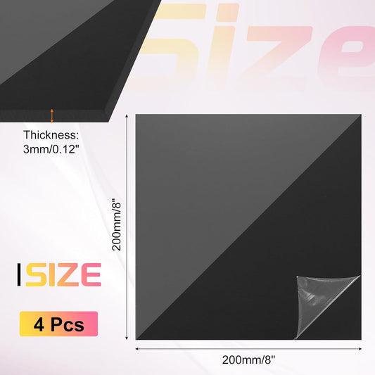 uxcell 4Pcs Acrylic Sheets 8x8 Inch Acrylic Panel 1/8 Inch-3mm Plastic Board for Picture Frames Sign Holders DIY Display Projects Craft, Black