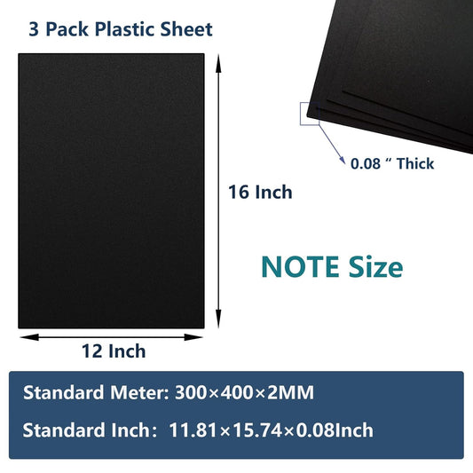 3 Pack Black Plastic Sheet 12x16x0.08 in Flexible High Tensile Plastic Sheets Black Plastic Panel for DIY Materials Handicrafts Home Decoration