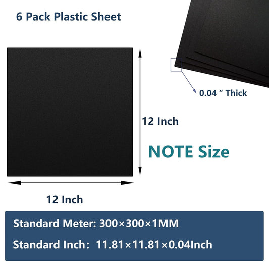 6 Pack Black Plastic Sheet 12x12x0.04 in Flexible High Tensile Plastic Sheets Black Plastic Panel for DIY Materials Handicrafts Home Decoration