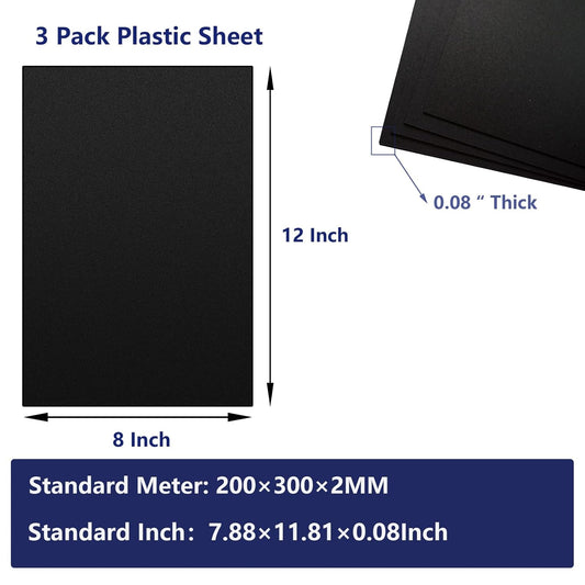 3 Pack Black Plastic Sheet 8x12x0.08 in Flexible High Tensile Plastic Sheets Black Plastic Panel for DIY Materials Handicrafts Home Decoration