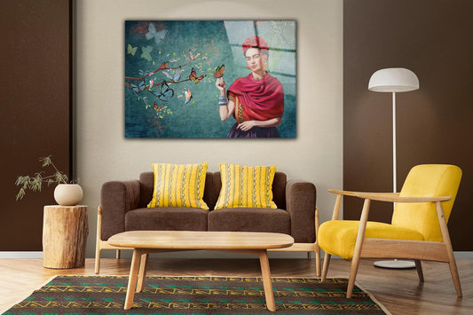 SpiritualHands Frida Kahlo Glasss Wall Art Print, Home Decor Glass Wall Art Artwork for Living Room, Pictures for Bedroom, Hanging Painting Tempered Glass Art