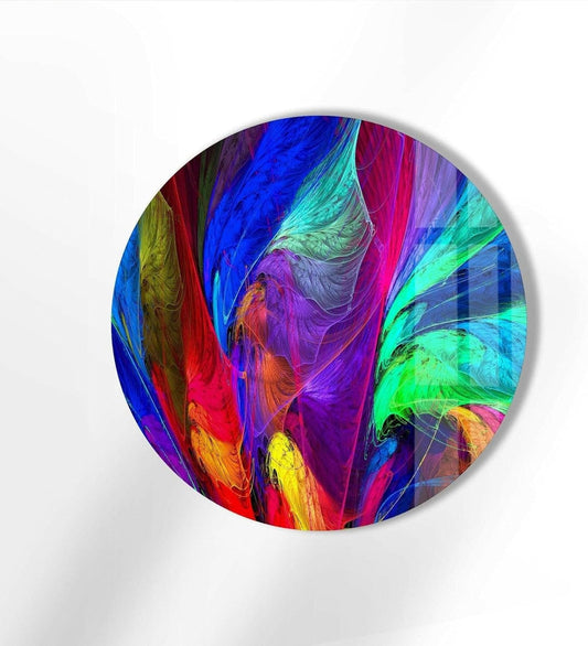 My Photostation.com 20''(50cm) Diameter Neon Colors Abstract Round Glass Wall Art Tempered Glass Printing Wall Decor Large Wall Art Wall Hangings