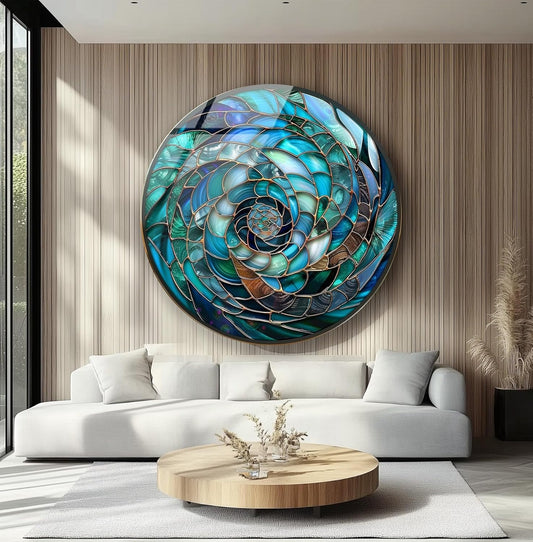 My Photostation.com 31.5''(80cm) Diameter Aqua Spiral Harmony Round Glass Wall Art Tempered Glass Printing Wall Decor Large Wall Art Wall Hangings