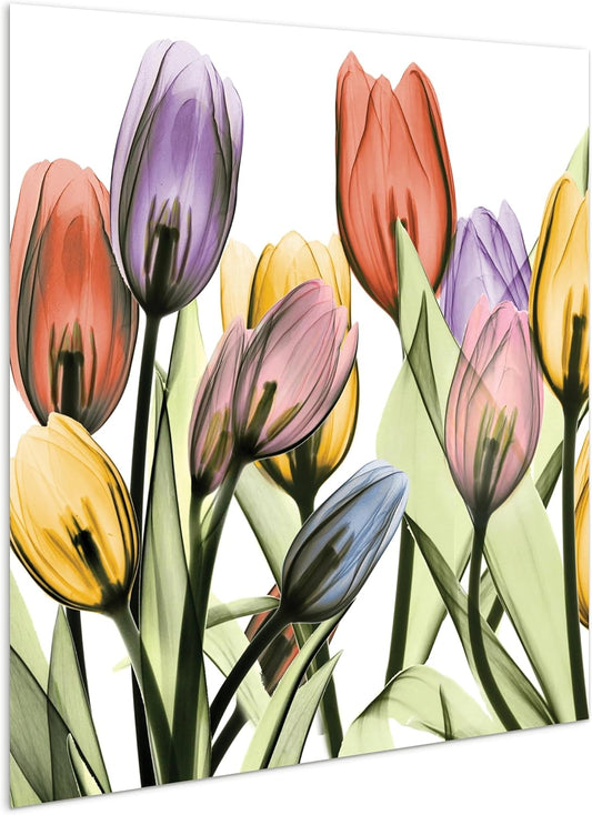 Empire Art Direct Frameless Free Floating Tempered Glass Panel Graphic Wall Art Ready to Hang, 24" x 24", Tulip Scape x-ray I