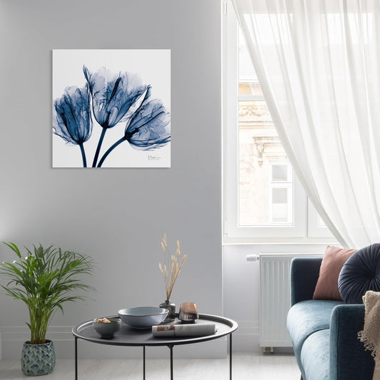 Empire Art Direct - TMP-AK011A-2424 Blue Tulip X-Ray Flower Wall Art on Frameless Free Floating Tempered Glass Panel Ready to Hang, Living Room, Bedroom & Office, 24" x 24" x 0.2"