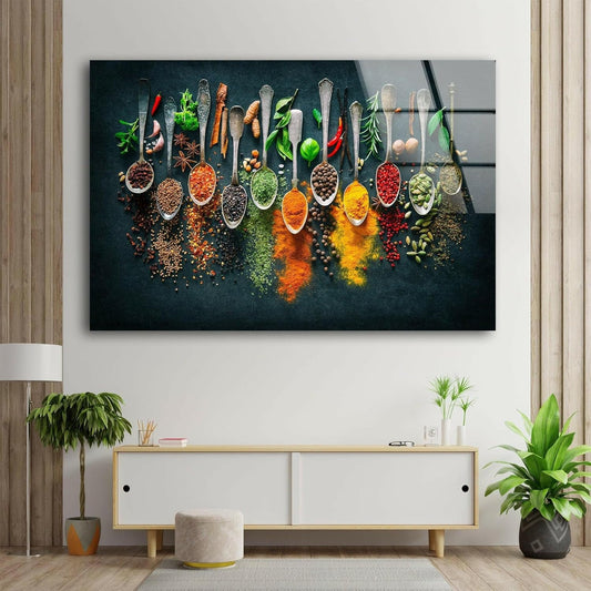 My Photostation.com 30Wx24H'' Spoon Spices Glass Wall ArtTempered Glass Printing Wall Decor Large Wall Art Wall Hangings
