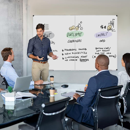 XBoard Magnetic Whiteboard 96 x 48 Inch, Giant Foldable Dry Erase White Board for Wall with Marker Tray 8' x 4' | Aluminum Frame Presentation Board