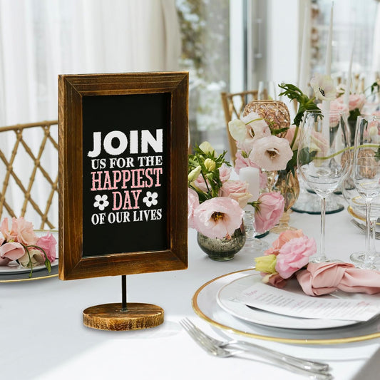 5 X 6 Inch Mini Tabletop Chalkboard Signs with Rustic Style Wood Base Stands, Set of 4,Include 3 chalks