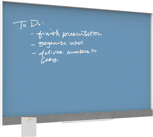U Brands Magnetic Glass Dry-Erase Board, 36" x 48" Inches, Blue Surface, White Aluminum Frame