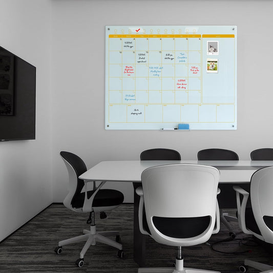 Magnetic Glass Whiteboard Calendar 48"x36" Glass Dry Erase Calender Board 36"x48" Monthly Plan White GlassBoard Wall Mounted for Office School Home (White)