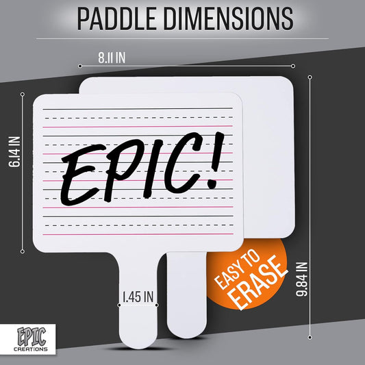 Epic Creations Dry Erase Paddles - 24 Pack 8.11 x 6.14 Inches - Double Sided Handheld Whiteboard - Dry Erase Signs - Hand Held White Board - Auction Paddles - White Board Paddles,Hand Dry Erase Board