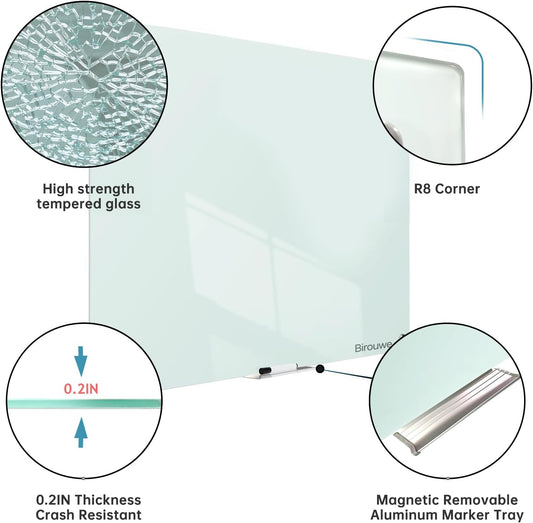 Magnetic Glass Whiteboard - Glass Dry Erase Board 36"x24" Large Frameless Glass Board for Walls Office School and Home