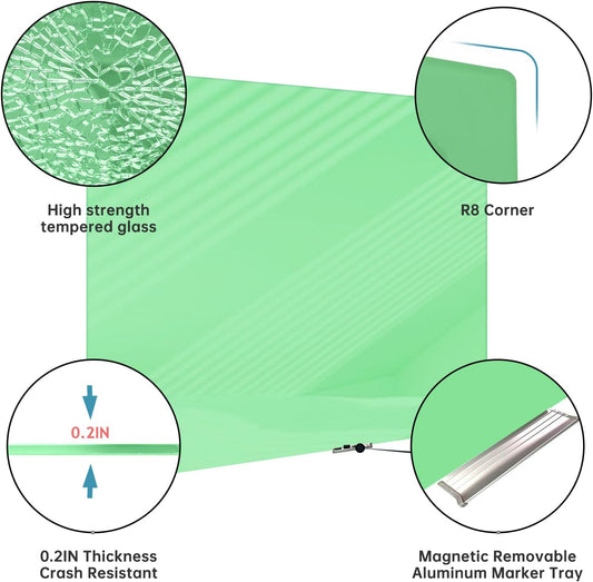 Magnetic Glass Whiteboard - Glass Dry Erase Board 48"x36" Large Frameless Glass Board for Walls Office School and Home, Green