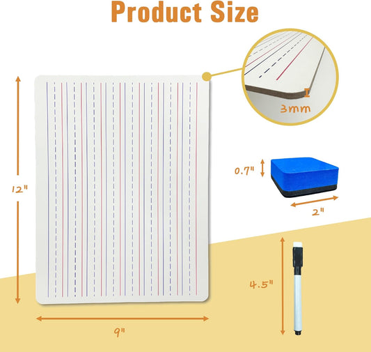 12PCS Dry Erase Boards,9"x12" Double Sided Small Whiteboards with Lines,Students,Education Teacher Classroom,Mini Portable Drawing Learning Lapboards with Colors Pens and Erasers.