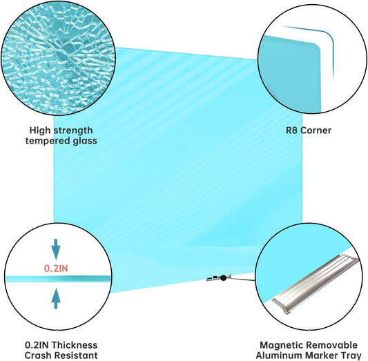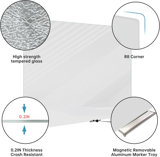 Magnetic Glass Blackboard - Glass Dry Erase Board 48"x36" Large Frameless Glass Board for Walls Office School and Home