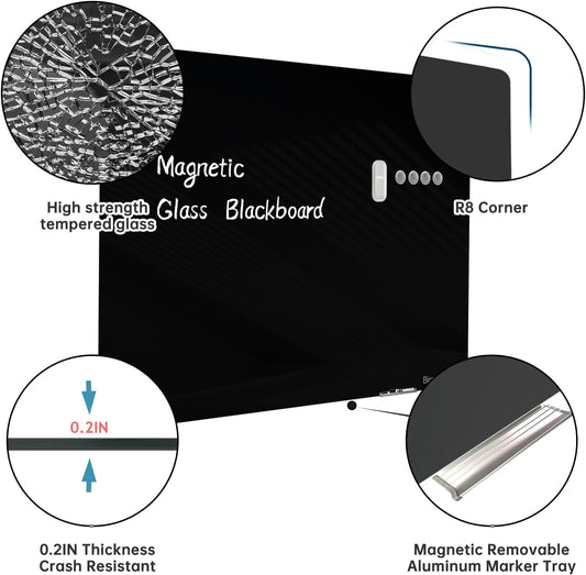 Magnetic Glass Blackboard - Glass Dry Erase Board 48"x96" Large Frameless Board for Walls Office School and Home,Black