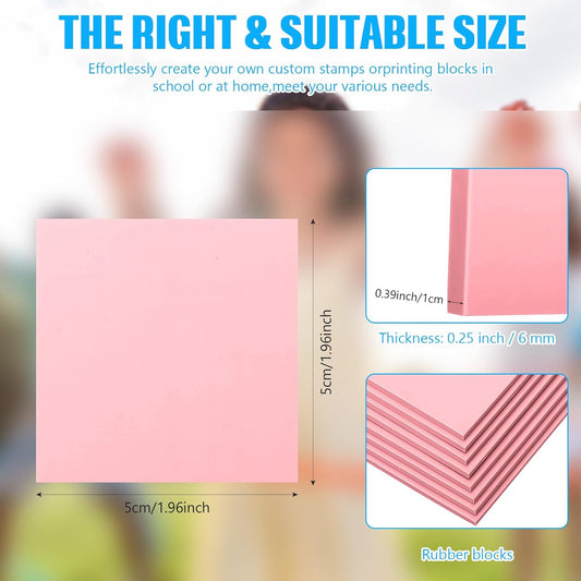24 Pcs 2" x2" Pink Rubber Art Soft Linoleum Carving Block, Rubber Crafts Linocut Block for Printmaking,DIY Crafting Stamp Carving Block