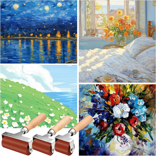 HRJZF 3 Pack Rubber Brayer Roller for Printmaking, Great for Gluing Application Also. Anti Skid Tape Construction Tools, Print, Ink and Stamping Tools 4 Inch