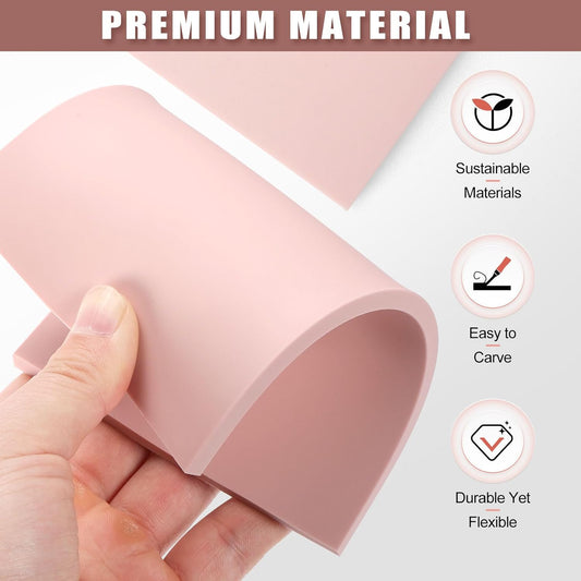 4 Pack 4"x6" Pale Pink Rubber Stamp Carving Blocks, Rubber Carved Brick for Stamp Soft Rubber Crafts and DIY Craft Project