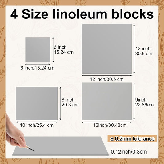 Yeaqee 4 Pcs Linoleum Block Rubber Carving Block Soft Linocut Blocks Large Linoleum Sheet Unmounted Lino Plates for Engraving Art Project Printmaking Artist Studio Supplies (12 x 12 Inch,Gray)
