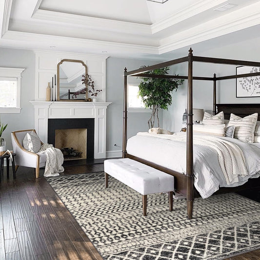 Geometric Moroccan 6x9 Rug, Ultra Soft Distressed Black Rug for Bedroom Non-Slip, Low-Pile Washable Living Room Rug Indoor Carpet for Bedroom Dining Room Classroom Dorm