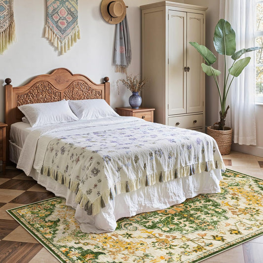 Lahome Bohemian Floral Medallion Area Rug - 3x5 Soft Rug for Bedroom Living Room Mat, Cute Washable Indoor Floor Throw Carpet for Office Entry Way Apartment Dressing Room RV, Yellow/Green/Multi