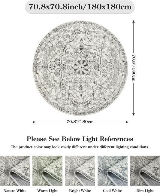 Lahome Bohemian Washable Round Rug, Large Round Rugs 6ft Non Slip Circle Rugs for Living Room, Soft Non Slip Non Shedding Printed Indoor Carpet for Dining Bedroom Kitchen Office, Beige