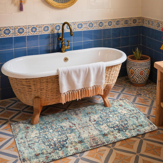 Lahome Boho Bohemian Area Rug - 2x3 Small Washable Bathroom Entryway Kitchen Rug,Floral Medallion Non Slip Pet Friendly Vintage Throw Carpet for Indoor Front Door Sink Living Room Bedroom,Teal