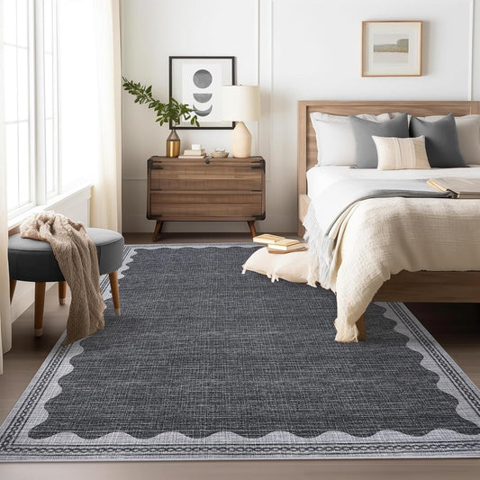 Scalloped Washable Rug 8x10 Area Rugs for Living Room, Solid Grey Rug for Bedroom Girls, Non Slip Throw Carpet with Rubber Back, Soft Dorm Nursery Scalloped 8x10 Rugs for Dining Room