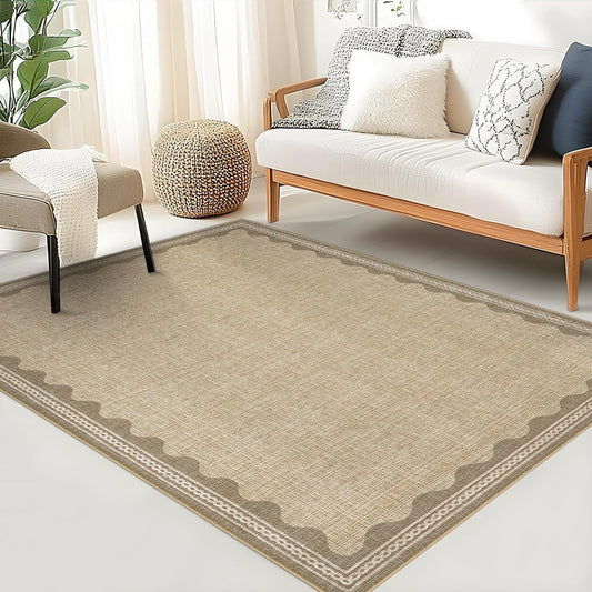 Scalloped Washable Rug 8x10 Area Rugs for Living Room, Solid Jute Rug for Bedroom Girls, Non Slip Scalloped Throw Rugs with Rubber Back, Soft Dorm Nursery 8x10 Carpet for Dining Room