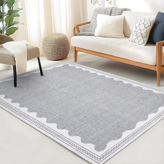 Scalloped Washable Rug 5x7 Area Rugs for Living Room, Solid Grey Rug for Bedroom Girls, Non Slip Scalloped Rug Throw Rugs with Rubber Back, Soft Dorm Nursery Low Pile Carpet for Dining Room